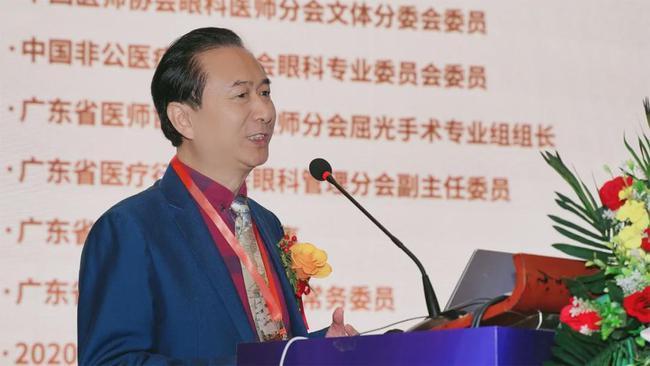 ▲中国医药教育协会医疗器械管理眼科分会主任赵刚平教授分享“屈光性人工晶体矫正老视的成功要素”主题演讲